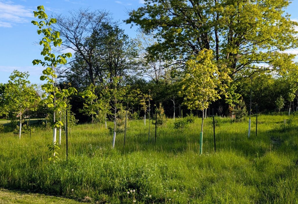 “We try and pick locations with limited or declining tree canopy (mostly due to tree die-off caused by emerald ash borer) or where we can extend an existing tree line or groupings of trees. We had started planting in the north section of Snider Park in 2024, [and] this year’s planting concluded that installation,” he explained.